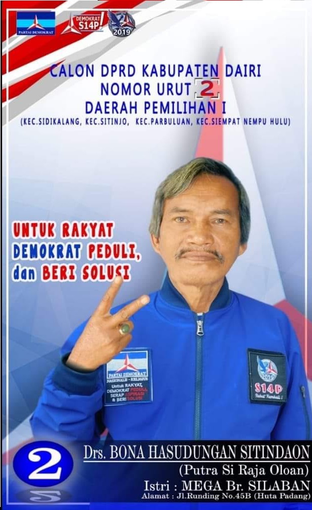 3. Drs. Bona Hasudungan Sitindaon untuk DPRD Kab. Dairi dari Partai Demokrat.